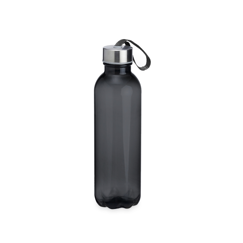 Garrafa PET 650ml com tampa de alumínio e alça para transporte embutida.