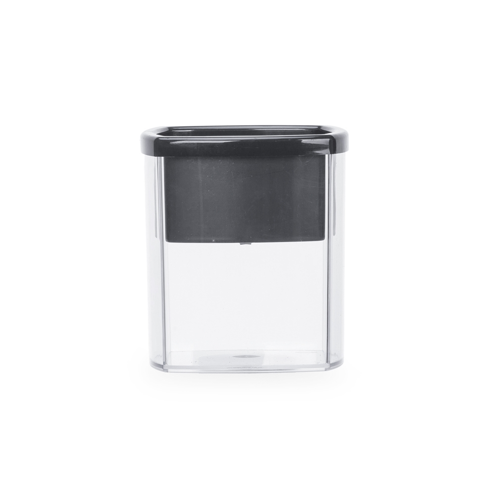 Porta caneta plástico com porta clips. Copo plástico resistente com parte interna colorida removível, tem duas separações para canetas e separação designada para clips.