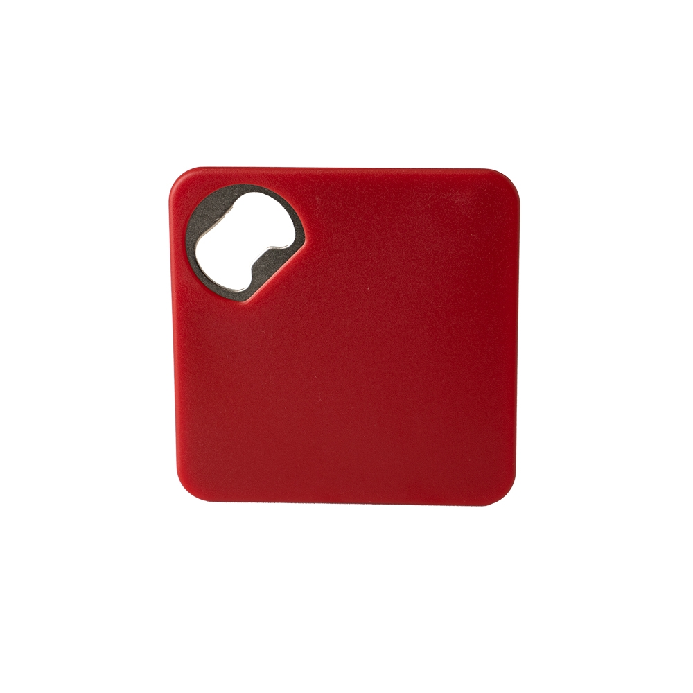 Porta copo produzido em plástico resistente. Possui abridor de garrafa e base antiderrapante.